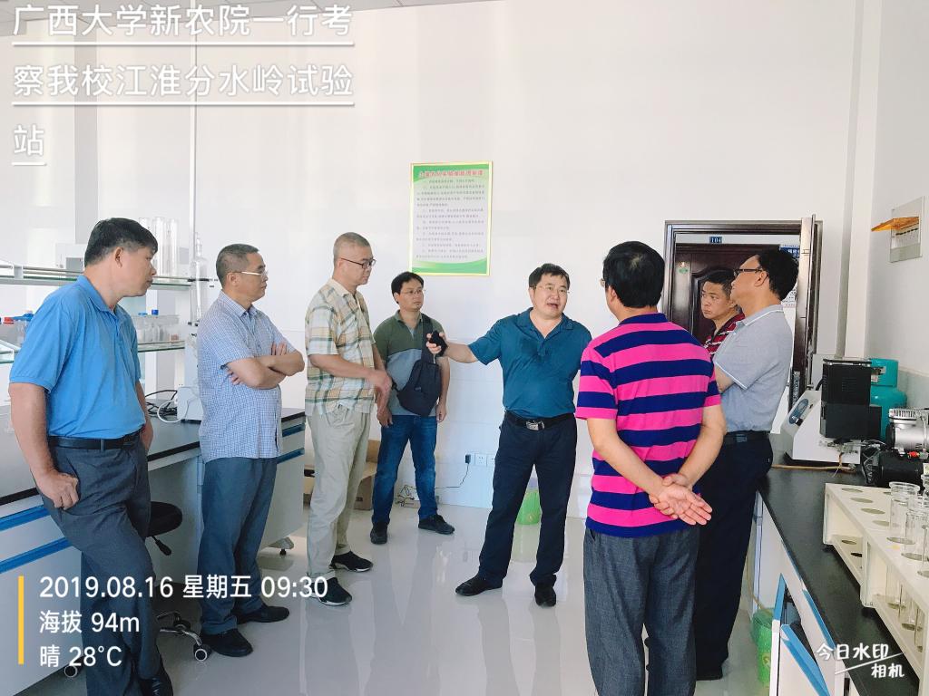 考察期间,广西大学新农村发展研究院一行考察了江淮分水岭综合试验站以及我校产业联盟服务的经营主体。定远县现代农业示范园、科技局等单位负责同志参加了活动。