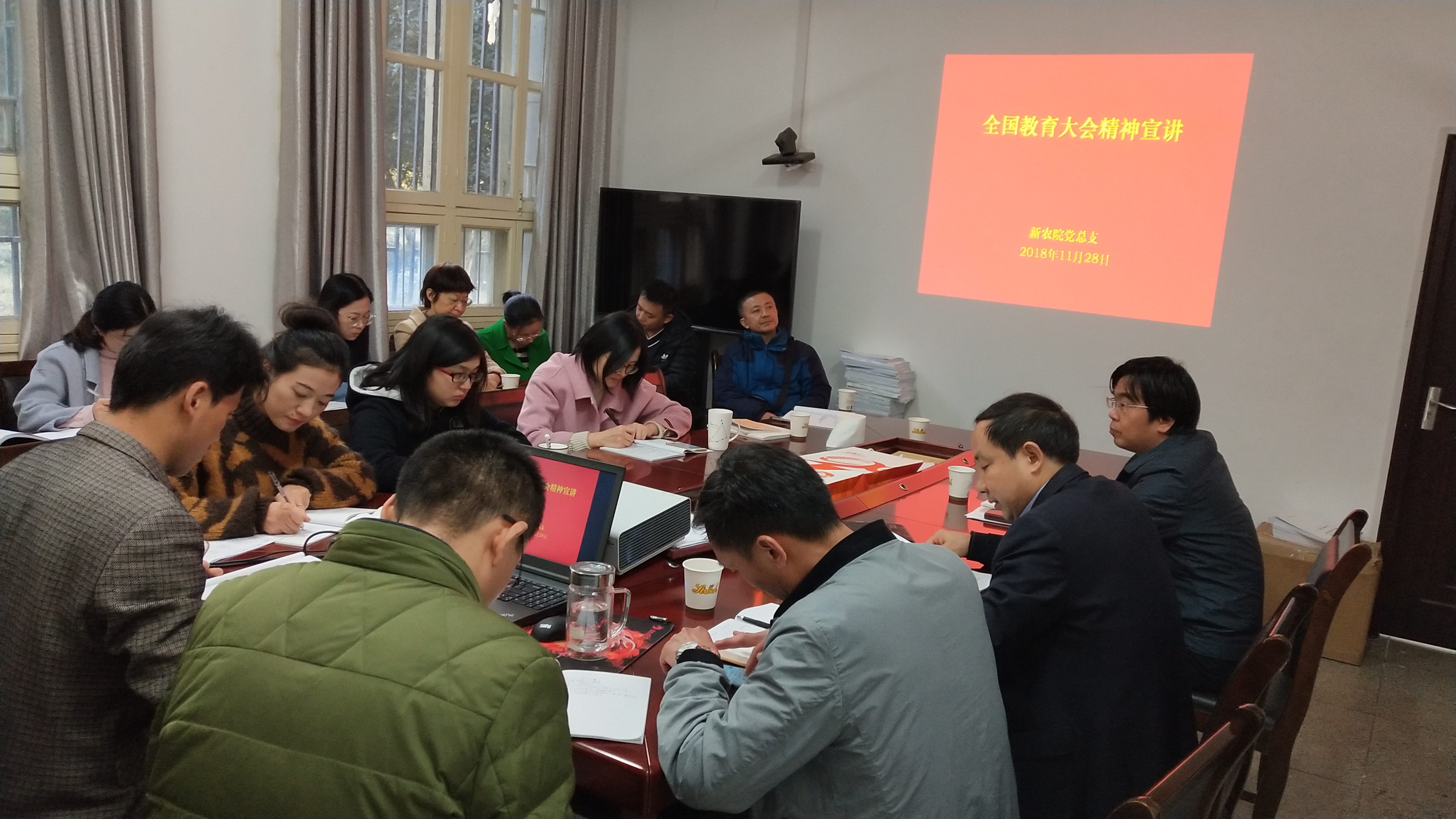 11月28日下午,新农院总支在党员活动室举行理论中心组(扩大)学习会,总支书记王华君同志为新农村发展研究院、继续教育学院全体职工宣讲了全国教育大会精神,并传达了校党委书记江春同志在学校全国教育大会精神宣讲大会上的讲话精神。