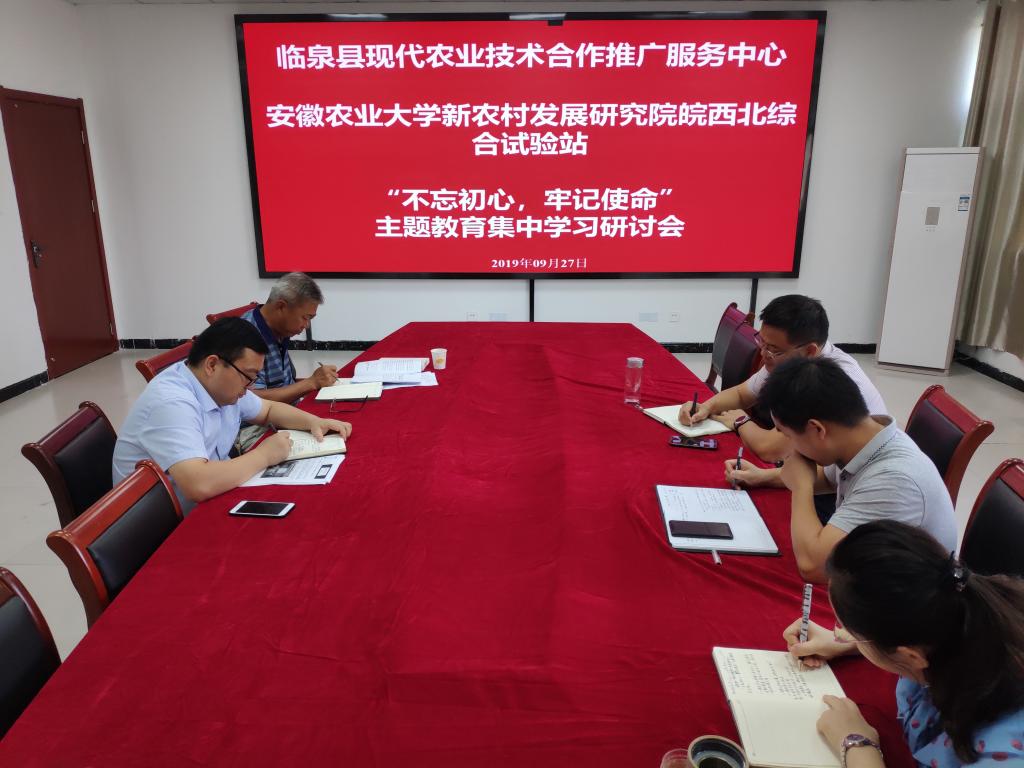 9月27日,在新农院党总支统一部署下,新农院各综合试验站统一启动“不忘初心、牢记使命”主题教育工作,开展了第一次集中学习研讨。我校驻站工作党员和校县合作推广中心工作人员参加会议,会议由各综合试验站站长主持。