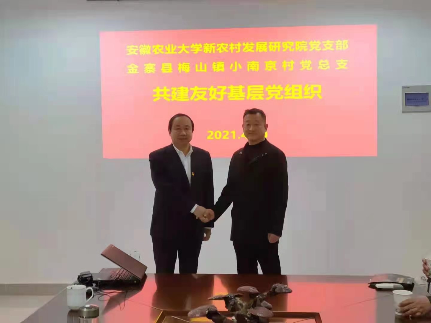4月10日,机关党委新农村发展研究院党支部赴大别山试验站所在地金寨县梅山镇小南京村,与该村党总支结对共建友好基层党组织,并就共同推动党建与事业融合,高校与地方联动,助力实施乡村振兴战略,建设高质量的乡村振兴典型示范村召开座谈会。