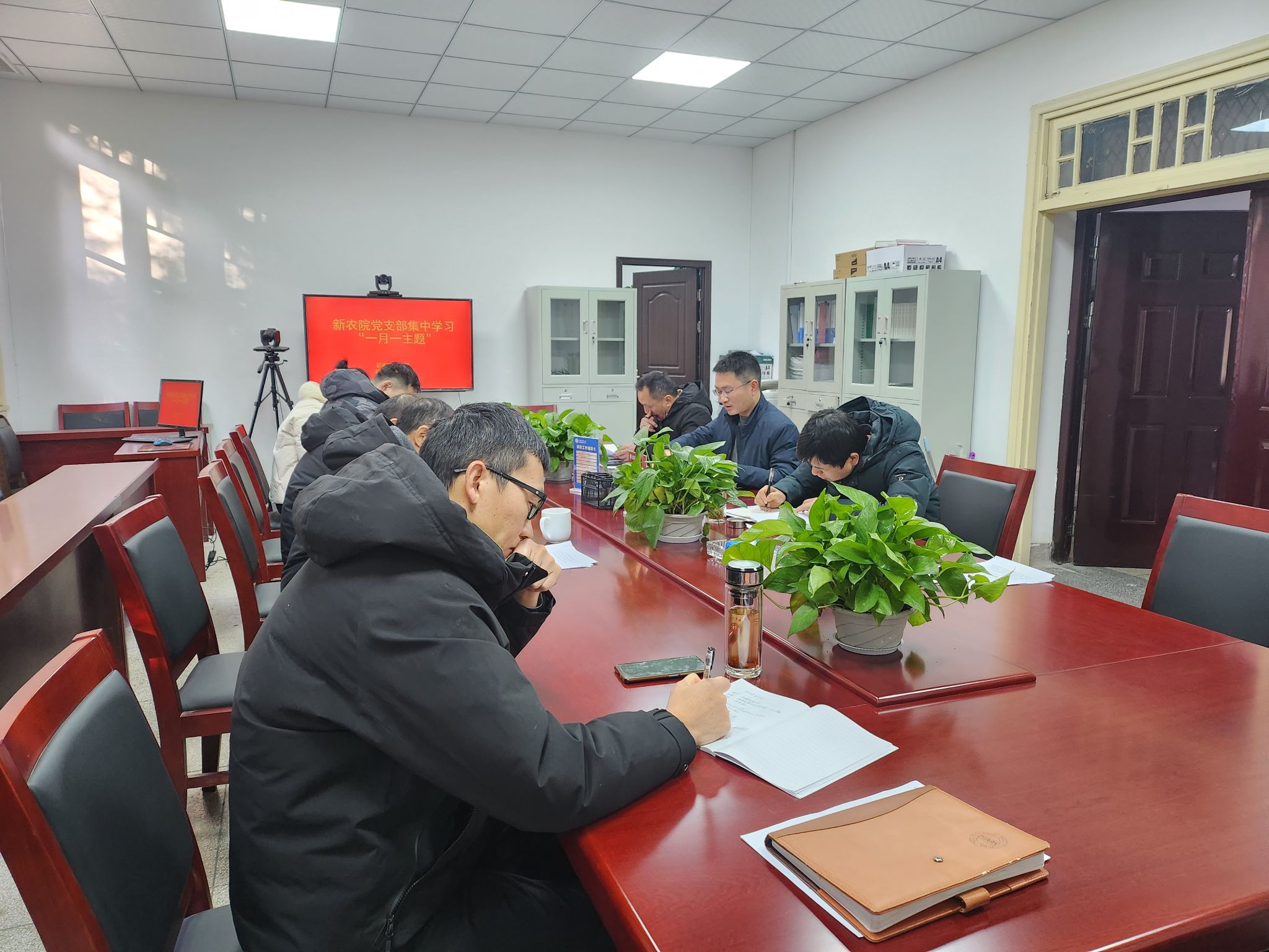 1月15日上午,新农院党支部召开2024年第一次支部集中学习研讨会暨“工作务虚会”主题党日活动,会议由党支部书记谈应权主持。