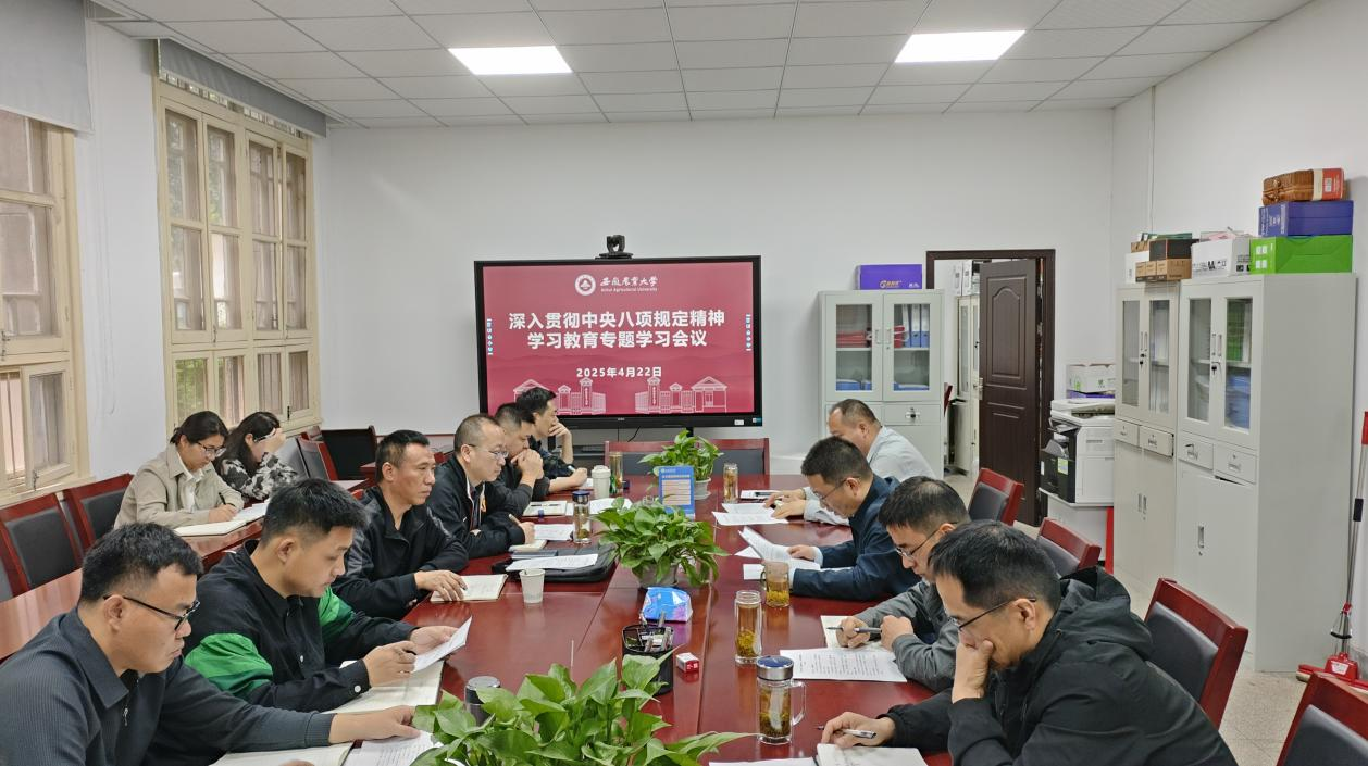 4月22日上午,新农院党支部召开深入贯彻中央八项规定精神学习教育专题学习会议,党支部书记谈应权主持会议。