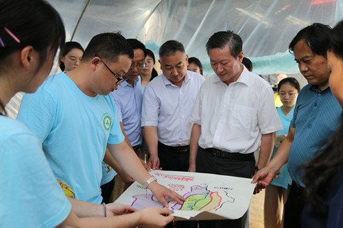 7月16日,校党委书记江春一行赴金寨县看望慰问暑期“三下乡”实践师生并调研脱贫攻坚工作。校纪委书记陈文兵参加调研慰问活动,校办公室、组织部、新农村发展研究院、团委、林学与园林学院等单位负责同志陪同慰问。
