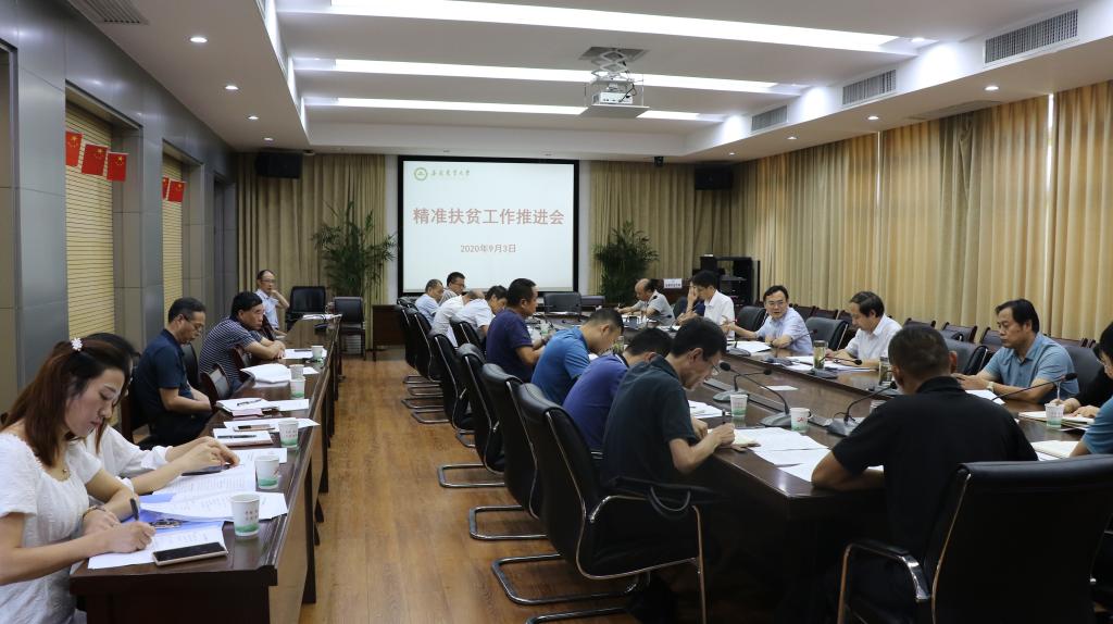 9月3日上午,学校在第三会议室召开精准扶贫工作推进会。校党委常委、副校长操海群主持会议,党委常委、宣传部长张健,相关部门和学院负责人参加会议。