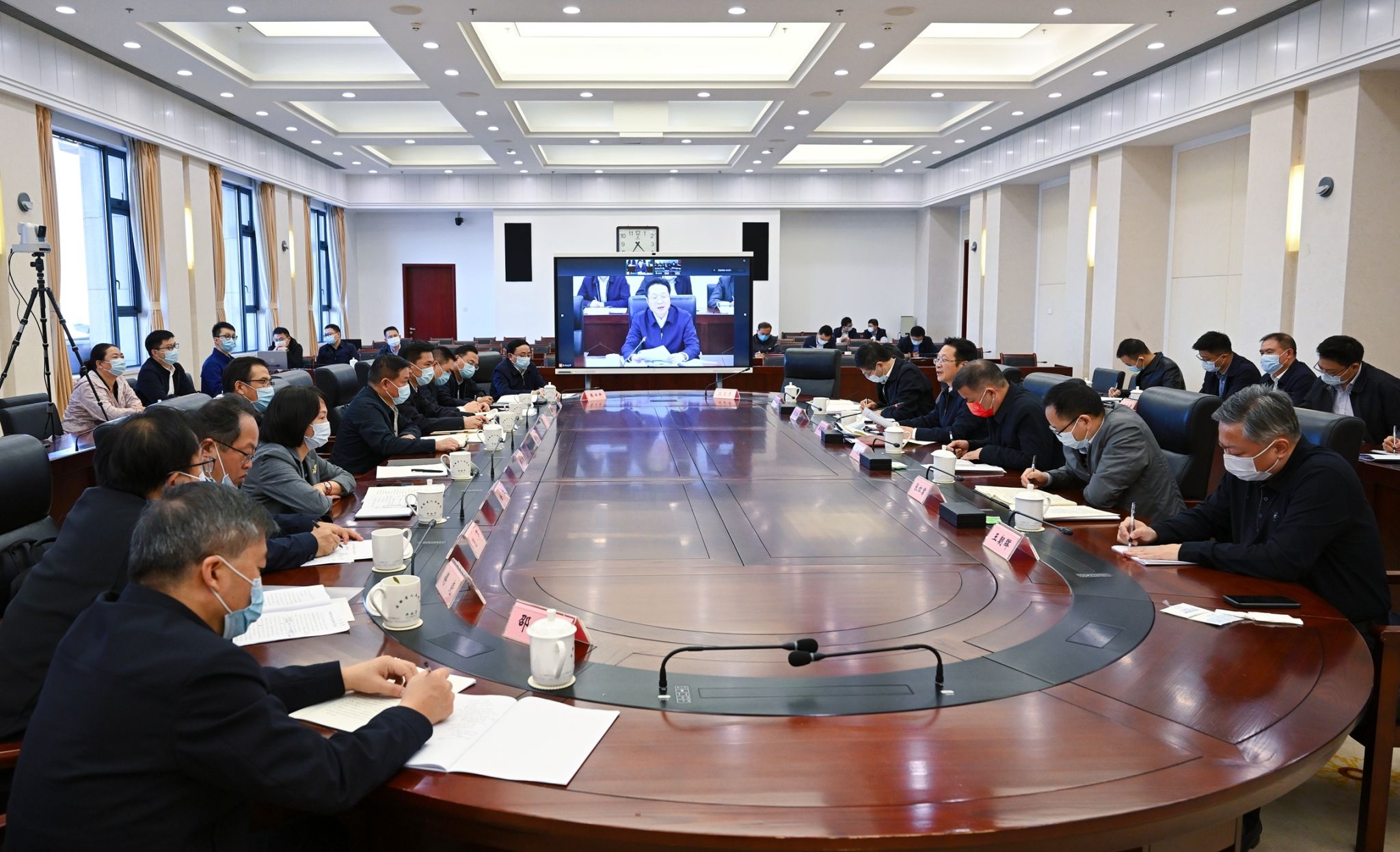 本网讯 10月18日,定点帮扶金寨县工作推进会在合肥市召开,省政府秘书长潘朝晖主持会议。党委常委、副校长操海群出席会议并作交流发言。
