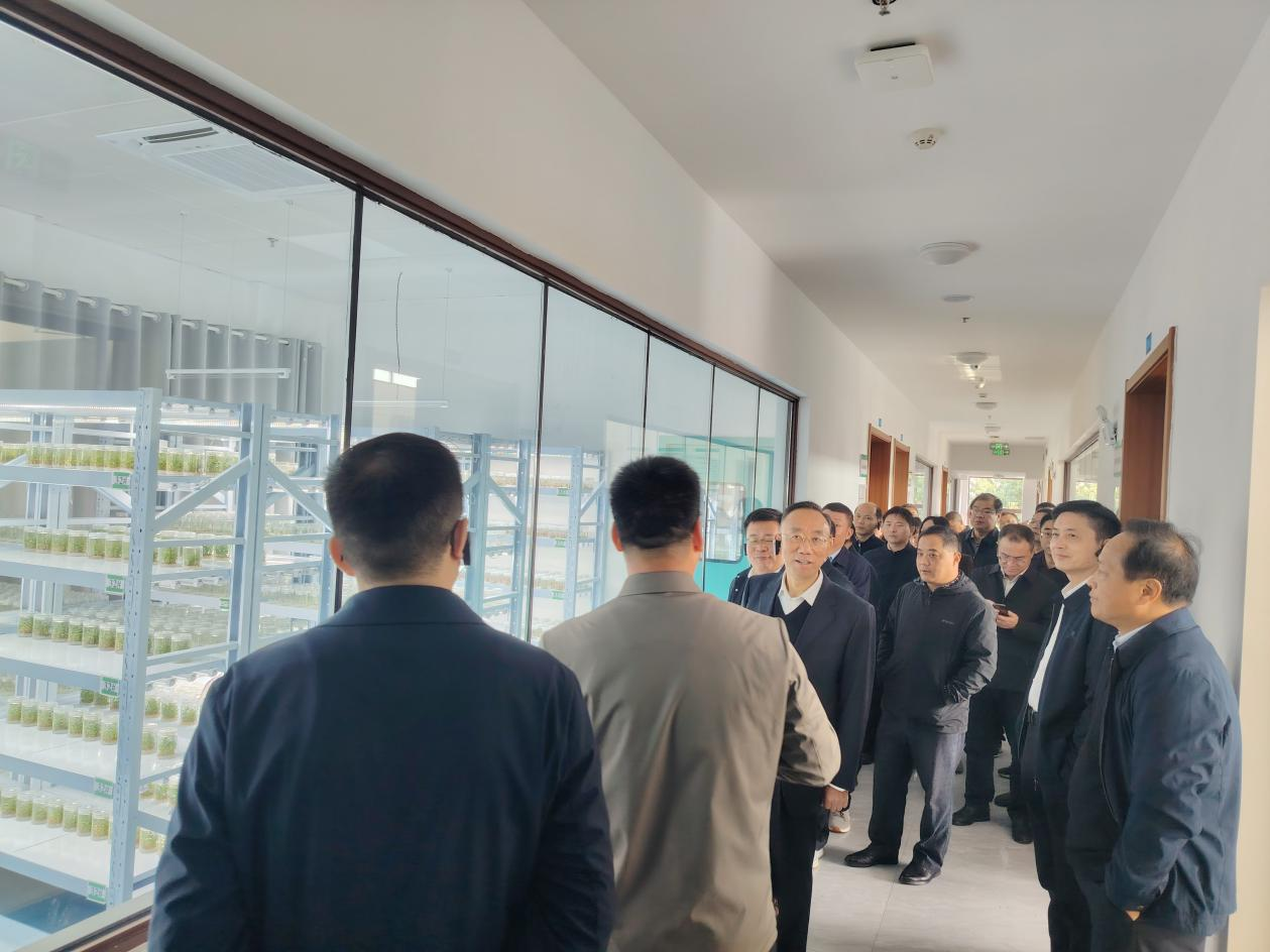 11月5日,安庆市农业农村局局长吴永生和安庆市各县(市、区)分管农业农村工作负责人一行到皖西南综合试验站调研考察,怀宁县委副书记代瑜陪同考察。