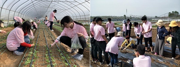 实习期间,在指导老师王冬良副教授和试验站工作人员的带领下,同学们分别前往了试验站的科技推广服务主体:明光市苏巷镇特色花卉种养业基地、明光市原野甜叶菊专业合作社、古沛镇艾草种植基地、安徽清山艾草制品有限公司等地开展实习。学习到非洲菊鲜切花、甜叶菊和艾草的生长习性、应用价值、栽培技术和养护管理等知识;并在基地实践了移苗、栽苗、扦插、剪苗等实际生产技术,将理论与实践相结合,取得了良好的成效。
