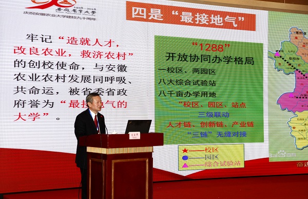 大会主题是“乡村振兴战略与大学的责任和使命”。会议特邀中国农科院王汉中院士、中国农业大学张福锁院士为大会做主题报告。美国科罗拉多州立大学、俄勒冈州立大学、马里兰大学、内布拉斯加林肯大学等4所国外高校,中国农业科学院、中国农业大学、浙江大学、西北农林科技大学、吉林大学、复旦大学、上海交通大学、华中农业大学等25所国内高校院所,安徽省科技厅、安徽省农业委员会、安徽省国家农业科技园区、校县(市、区)共建新型农技推广服务合作平台合作单位的领导、嘉宾共160余人参加大会。