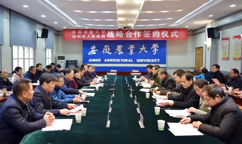 雍成瀚市长在讲话中表示,校市双方资源各具、特色各异,合作领域广泛、合作潜力广阔,特别是乡村振兴战略的实施和落实高质量发展的要求,对双方开展战略合作提出了新要求、提供了新机遇、双方合作大有可为,必有所为。他希望学校进一步发挥人才科技优势,充分利用池州资源环境优势,围绕绿色兴农、质量兴农、品牌兴农,加大科技成果研发和转化应用,支撑和引领池州农业转型升级、提质增效。