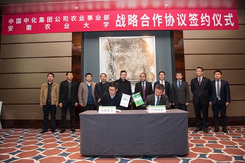 11月29日,我校与中国中化集团在合肥签订战略合作协议。校党委书记江春、副校长姚佐文和中国中化集团公司总裁助理(农业事业部总裁)覃衡德、农业事业部副总裁程永、农业事业部副总裁宋维波等领导出席签约仪式。姚佐文副校长、程永副总裁分别代表校企双方签订战略合作协议。我校办公室、新农村发展研究院等部门领导参加了签约仪式。