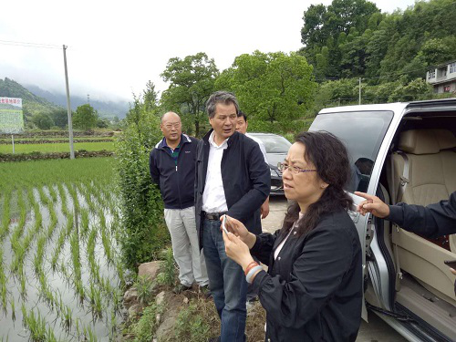 会前,江激宇一行全面考察了竹根河村的村容村貌,以及有机稻、生姜、山核桃等种养殖基地实地的生产状况。