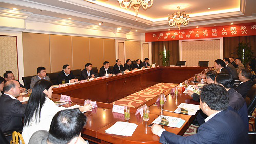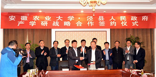 郭金友强调,泾县要以此次合作为契机,更进一步借助安徽农业大学的技术、人才等优势不断优化农业产业结构,促进泾县农业转型升级,希望安徽农业大学继续关心、支持泾县发展,真正实现校县合作互惠共赢。副校长马传喜代表我校与泾县人民政府签订合作协议书。
