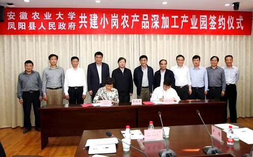 副校长马传喜与凤阳县委常委、常务副县长汪国玲分别代表双方签署了合作共建协议。此次校县合作是安徽农业大学、滁州市和凤阳县共同深入贯彻落实习近平总书记在小岗重要讲话精神的重要举措。