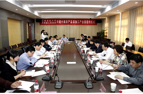 5月11日下午,安徽农业大学与凤阳县人民政府共建“小岗农产品深加工产业园” 签约仪式在我校第三会议室举行。校党委书记宛晓春、校长程备久、滁州市委书记李明、市委常委、常务副市长汪建中、凤阳县委书记米德成等出席签约仪式。签约仪式由程备久主持。