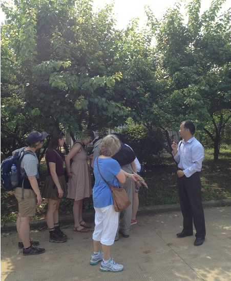 5月25日上午,美国罕布什尔学院Kay Johnson教授和Brian Schultz教授带领6名美国学生参观了我校农萃园,新农村发展研究院发展研究部主任肖双喜、农业园管理中心高级农艺师马元山陪同了参观活动。