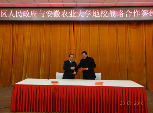 1月30日,我校与徽州区举行“十三五”产学研战略合作协议签约仪式。校长程备久、副校长马传喜及徽州区区委书记程红、区长王恒来等出席签约仪式。学校校办、人事处、新农村发展研究院、资源与环境学院、茶与食品科技学院、动物科技学院、林学与园林学院相关领导、专家教授和徽州区有关单位、相关企业领导参加大会。会议由徽州区委副书记吉刚主持。