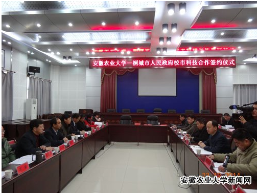 12月23日,我校与桐城市战略合作协议签订仪式在桐城举行。校长程备久、纪委书记裴树东,桐城市人大常委会主任王志义、市政府副市长王红松以及校市相关部门领导出席了签约仪式。会上,裴树东、王红松分别代表校市双方签订了战略合作协议。