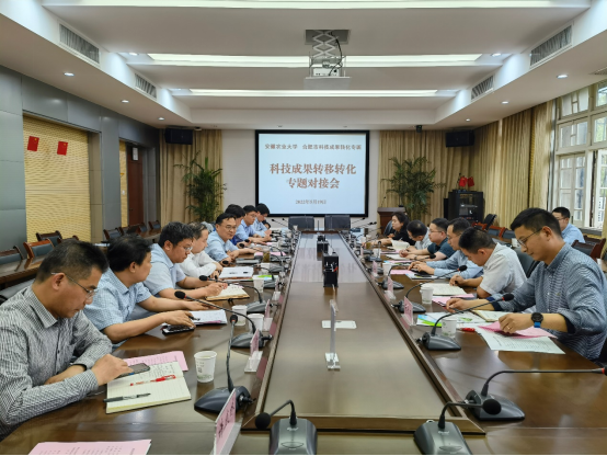 座谈会上,合肥市科技局、学校新农村发展研究学院负责同志分别介绍了合肥市科创委工作机制和学校科技成果转化工作情况。