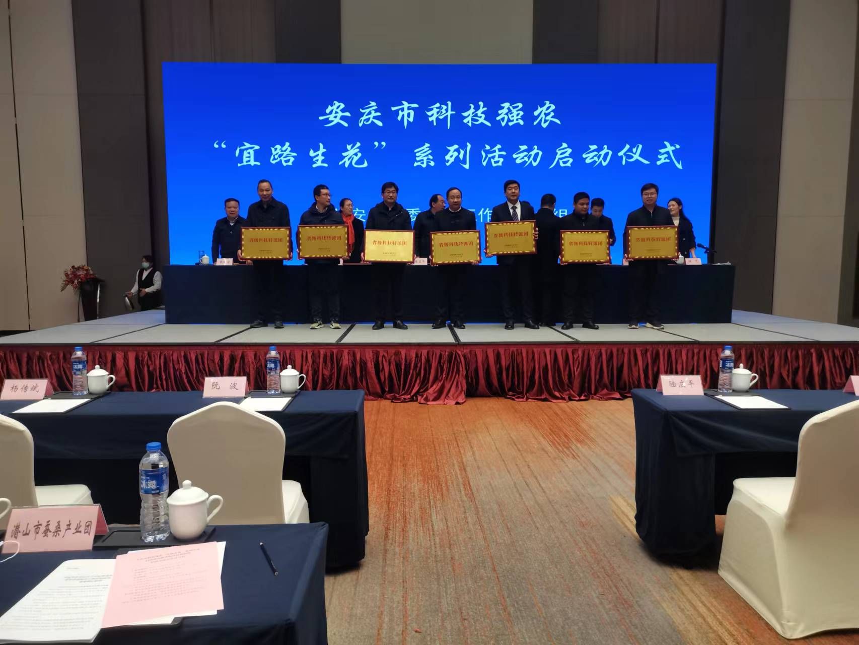 会议传达学习中央、省、市关于科技强农和科技特派员有关文件精神,启动安庆市科技强农“宜路生花”系列活动;向17个省级科技特派团进行了授牌。
