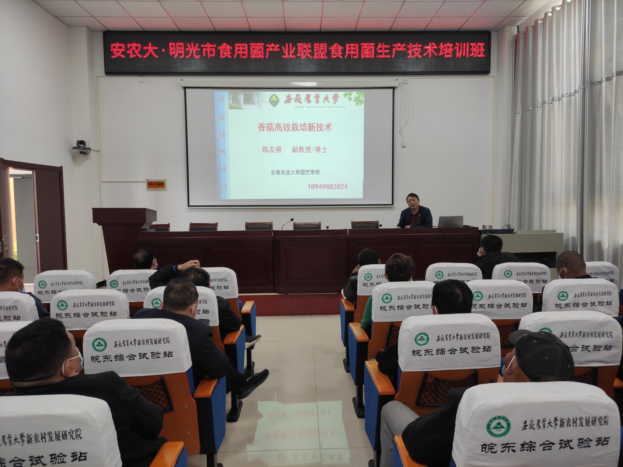 本网讯 安徽农业大学聚焦安徽省十大千亿级绿色食品产业高质量发展行动,围绕明光市食用菌等特色产业发展需求,优化产业联盟团队,整合资源力量,创新科技服务,依托学校科技、人才优势,培育食用菌产业联盟,为明光市食用菌产业发展提供技术和人才支撑。