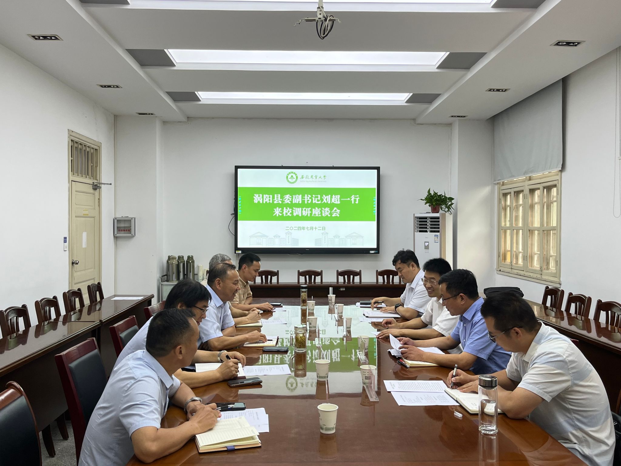 本网讯 7月12日上午,涡阳县委副书记刘超一行来校调研,就进一步深化校县全面战略合作进行座谈交流。校学术副校长吴文革主持会议。