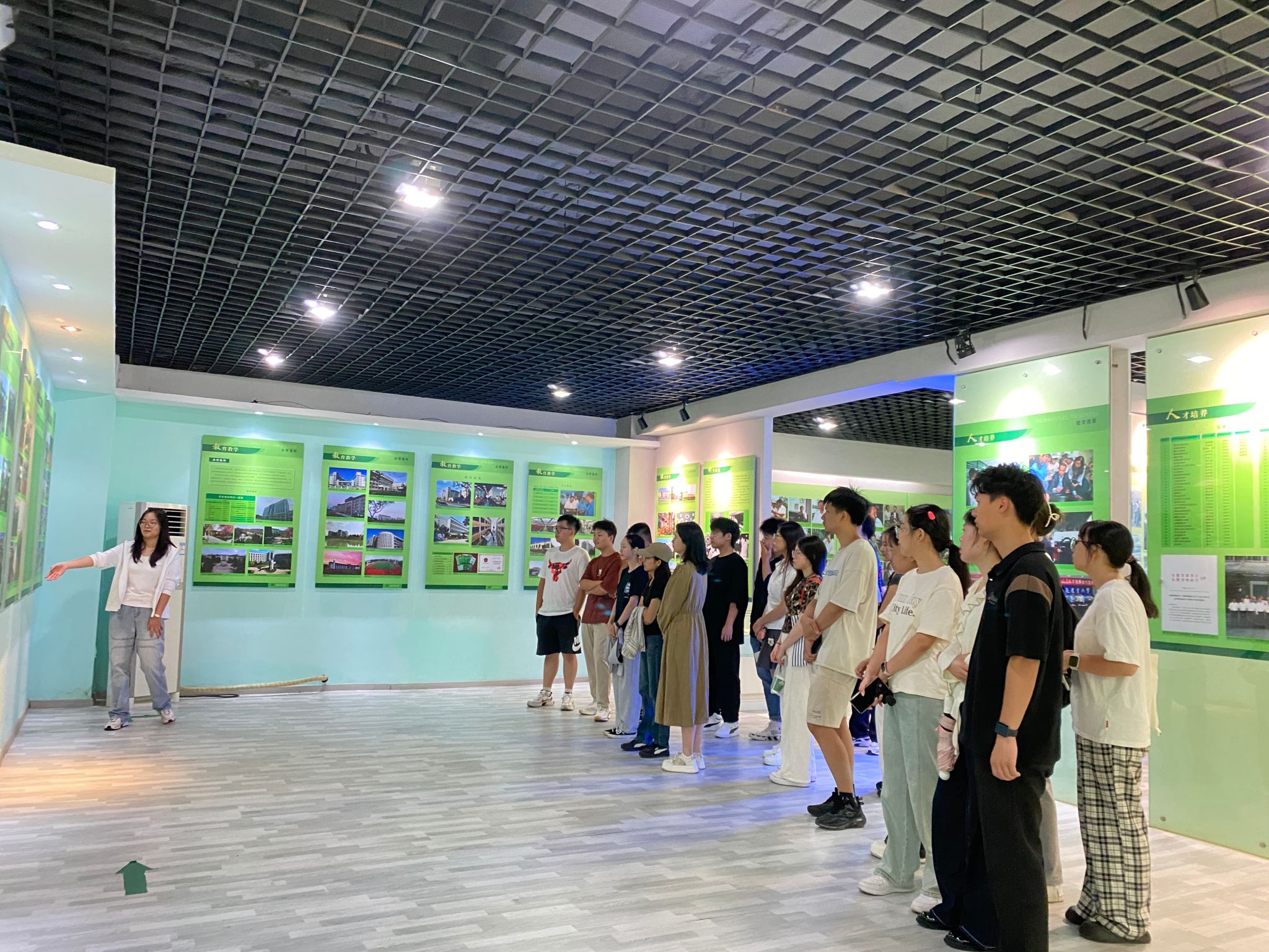 校史陈列馆解说员向同学们详细介绍了岁月洗礼和春华秋实两个板块,带领大家共同回顾了安农艰苦奋斗的创业史和发展史。一幅幅图片和一行行文字展现了一代代安农人自强不息、孜孜以求的奋斗精神,同学们纷纷驻足观看并深受震撼。