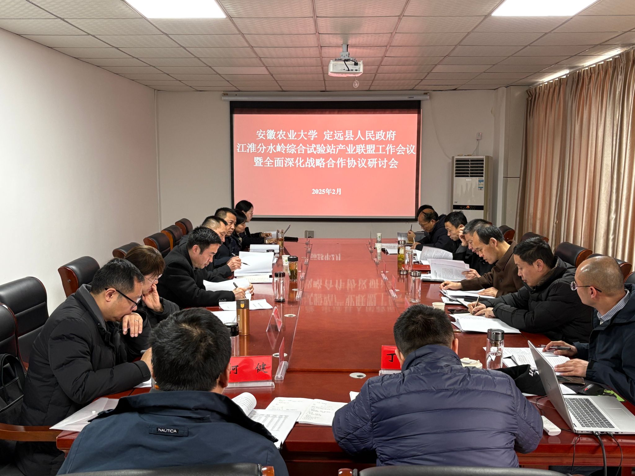 2月21日上午,我校与定远县人民政府召开全面深化战略合作暨产业联盟工作会议。定远县委常委、副县长李文书出席会议。会议由社会合作处相关负责人主持。