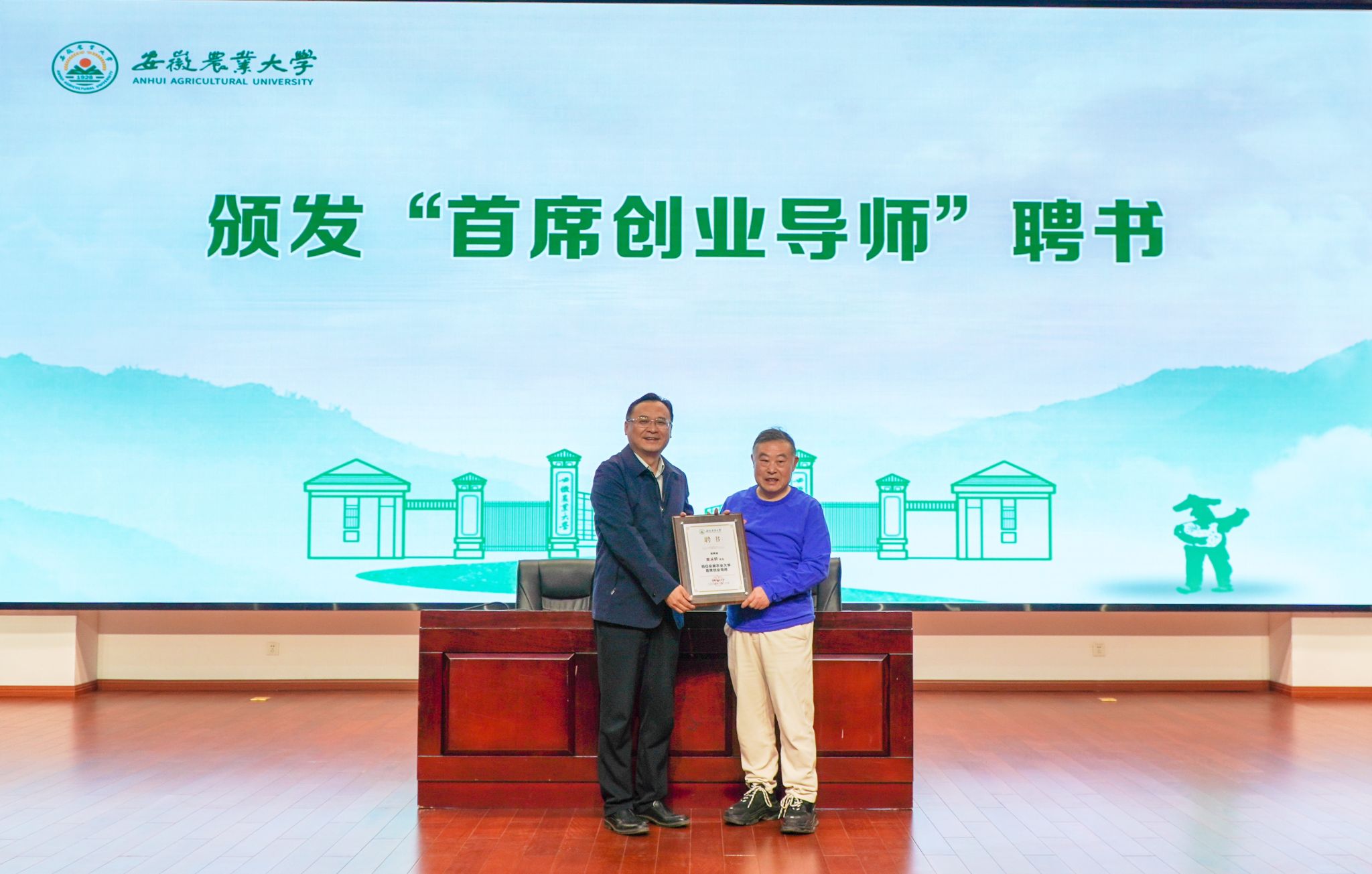 签约仪式上,操海群为束从轩颁发学校“首席创业导师”聘书,束从轩向学校赠送2024年自己手举的奥运火炬纪念品。签约仪式后,束从轩以“深耕农业,大有所为”为题,作“神农大讲堂”专题报告,分享了“从一只老母鸡到全产业链”的创业故事,展现了三十年深耕农业的奋斗历程,诠释了一名农业企业家强烈的“三农”情怀。