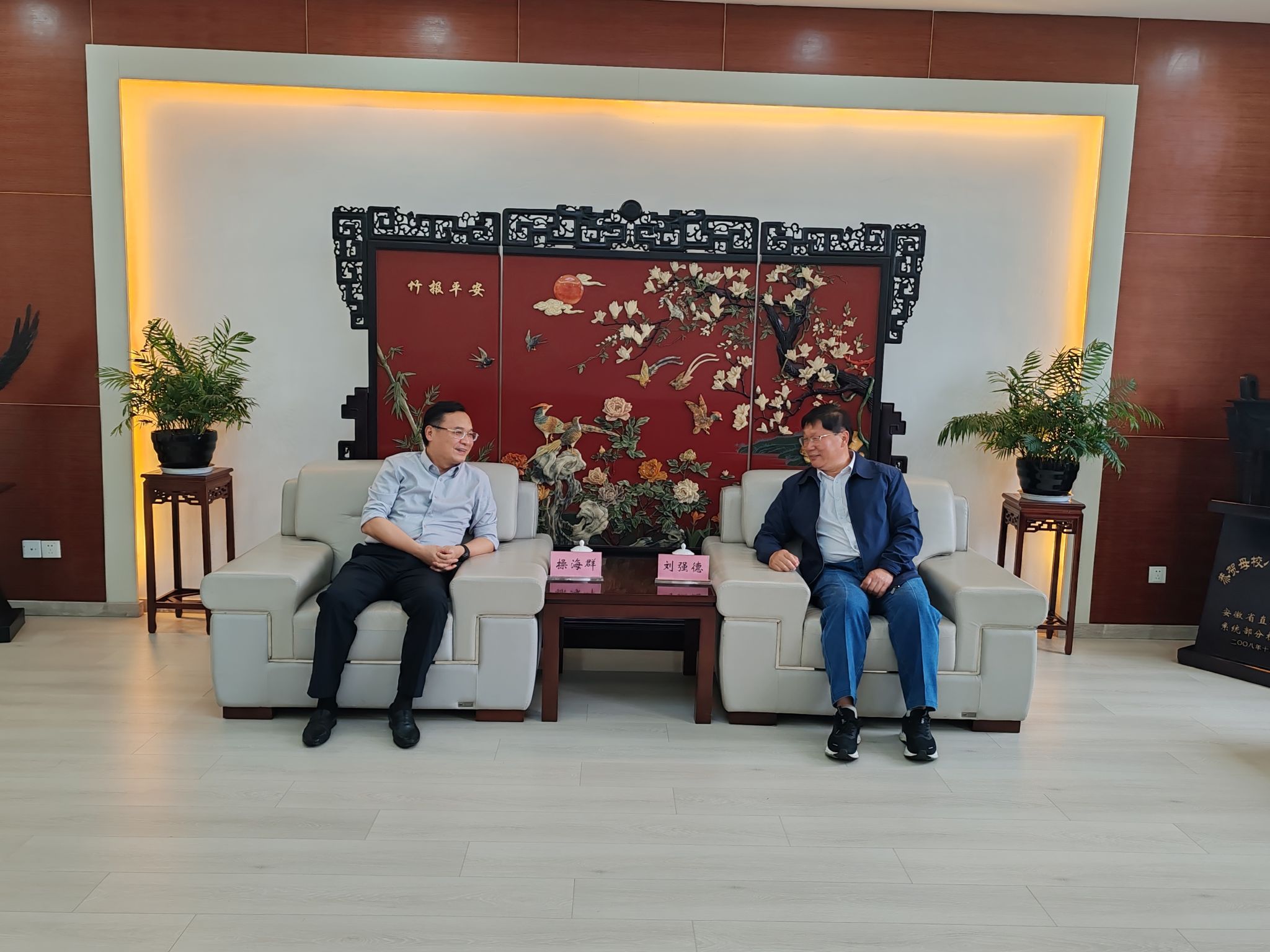 江海洋对刘强德、焦鹏一行来访表示欢迎,他指出牛业发展大会是学校助力千亿级绿色食品肉牛产业发展的具体举措,要完善活动方案,统筹各项工作推进,确保工作高质量落实;创新合作机制,以需求为导向,在平台共建、良种选育、成果转化等方面深化校协、校地合作,打造合作新样板,共同助力我省乡村全面振兴。