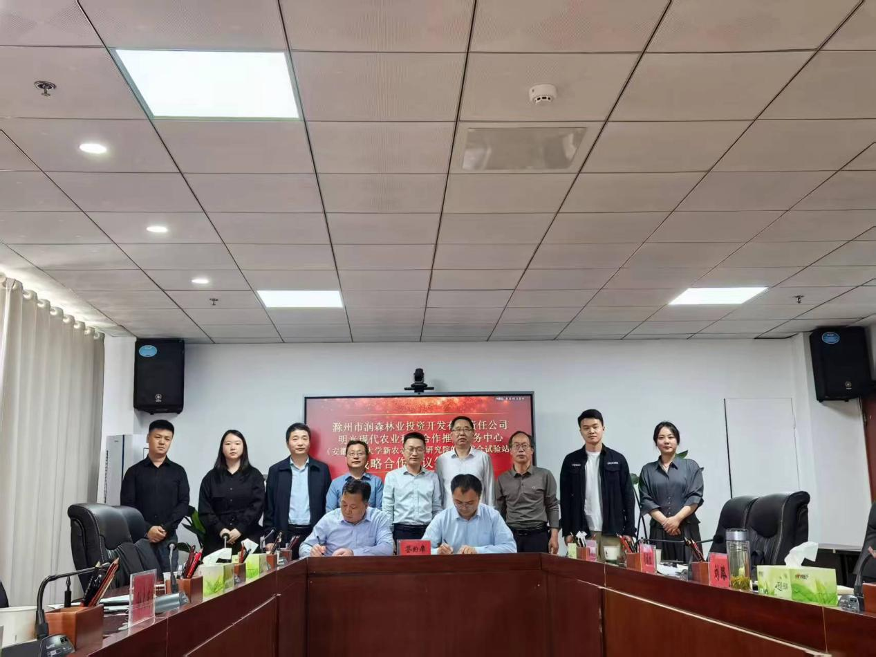 仪式上,皖东综合试验站负责人与滁州市润森林业投资开发有限责任公司负责人签署战略合作协议。(文图/刘路 编辑/王润 预审/李玮)
