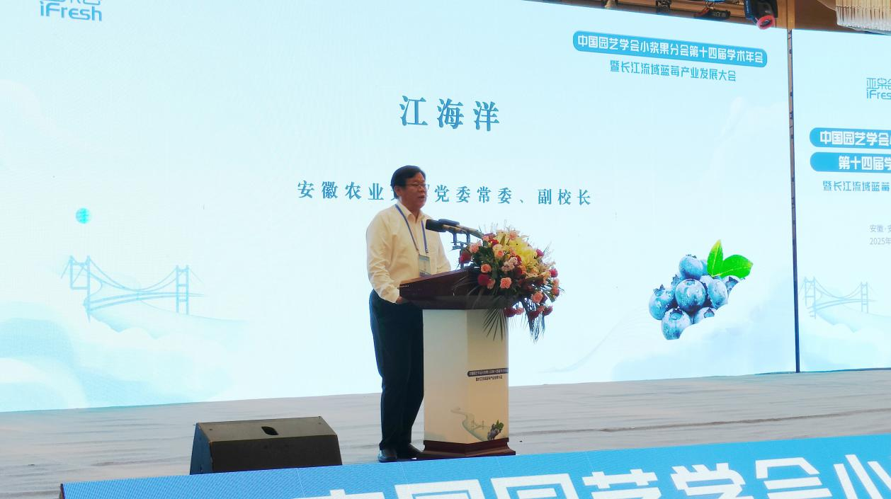 江海洋参加了第八届怀宁蓝莓文化旅游大会启动仪式,并在中国园艺学会小浆果分会第十四届学术年会暨长江流域蓝莓产业发展大会上致辞。他指出,本次会议为共同探索蓝莓全产业链转型升级提供了平台,为乡村振兴和农业农村现代化注入了新的动能。他强调,我校将进一步加大成果转化与应用推广,围绕蓝莓种质资源保护与利用、绿色高效栽培技术、蓝莓深加工、保鲜存储技术等方面,为助力怀宁县蓝莓产业高质量发展提供“安农方案”。