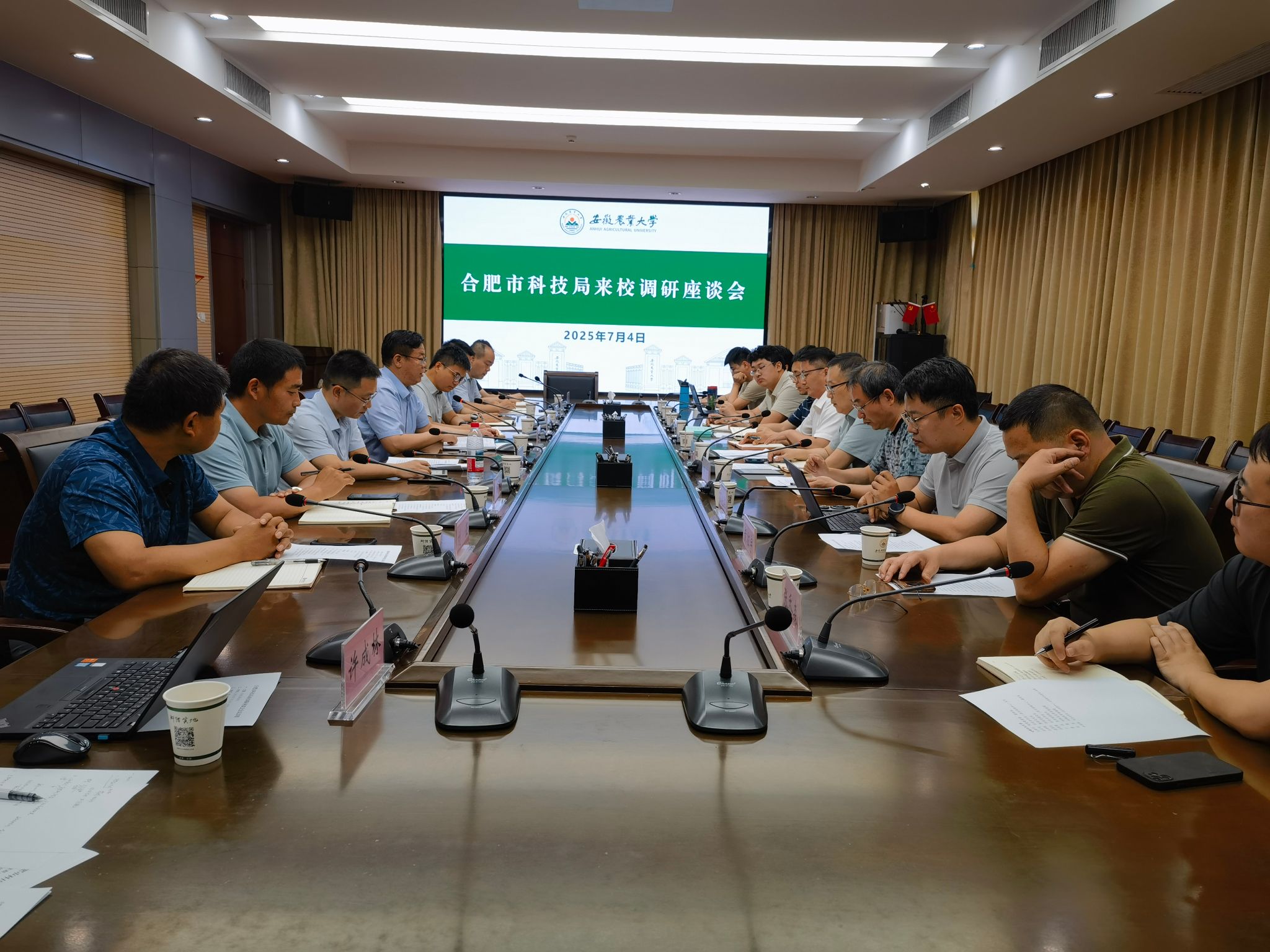 江海洋对合肥市科技局一行来访表示欢迎,并介绍了学校在科技创新和成果转化方面的成果与实践。他强调,促进科技成果转化是加快建设农工商融合发展的特色高水平大学的重要引擎,学校期待与合肥市科技局深化合作,共同推动各项支持政策精准落地、高效实施,共谋创新转化发展路径。