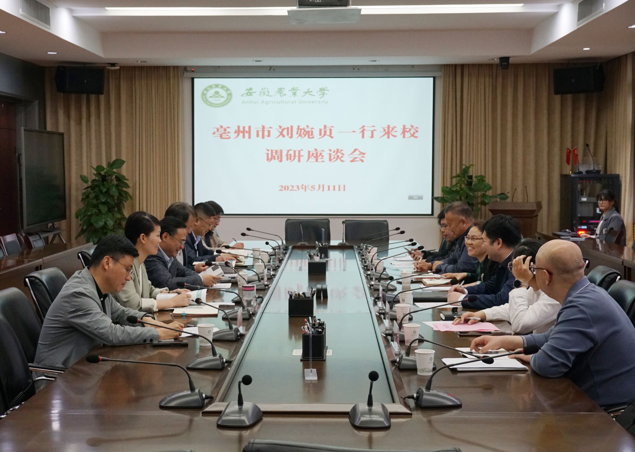 亳州市政府办、农业农村局、科技局、投资促进中心,校新农村发展研究院、高质量发展工作专班、农学院、植物保护学院、茶与食品科技学院相关负责人参加会议。会上,新农院介绍了综合试验站、社会合作相关情况,双方与会人员就校市合作进行深入交流。